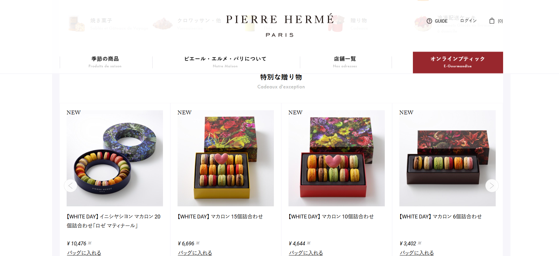 オンラインブティックでは、ローズ、ライチ、フランボワーズを組み合わせたシグネチャー「イスパハン」をはじめ、季節ごとに変化する限定フレーバーの詰め合わせをご用意しています。洗練されたパッケージデザインは、ご自身へのご褒美はもちろん、大切な方へのギフトとしても選ばれています。