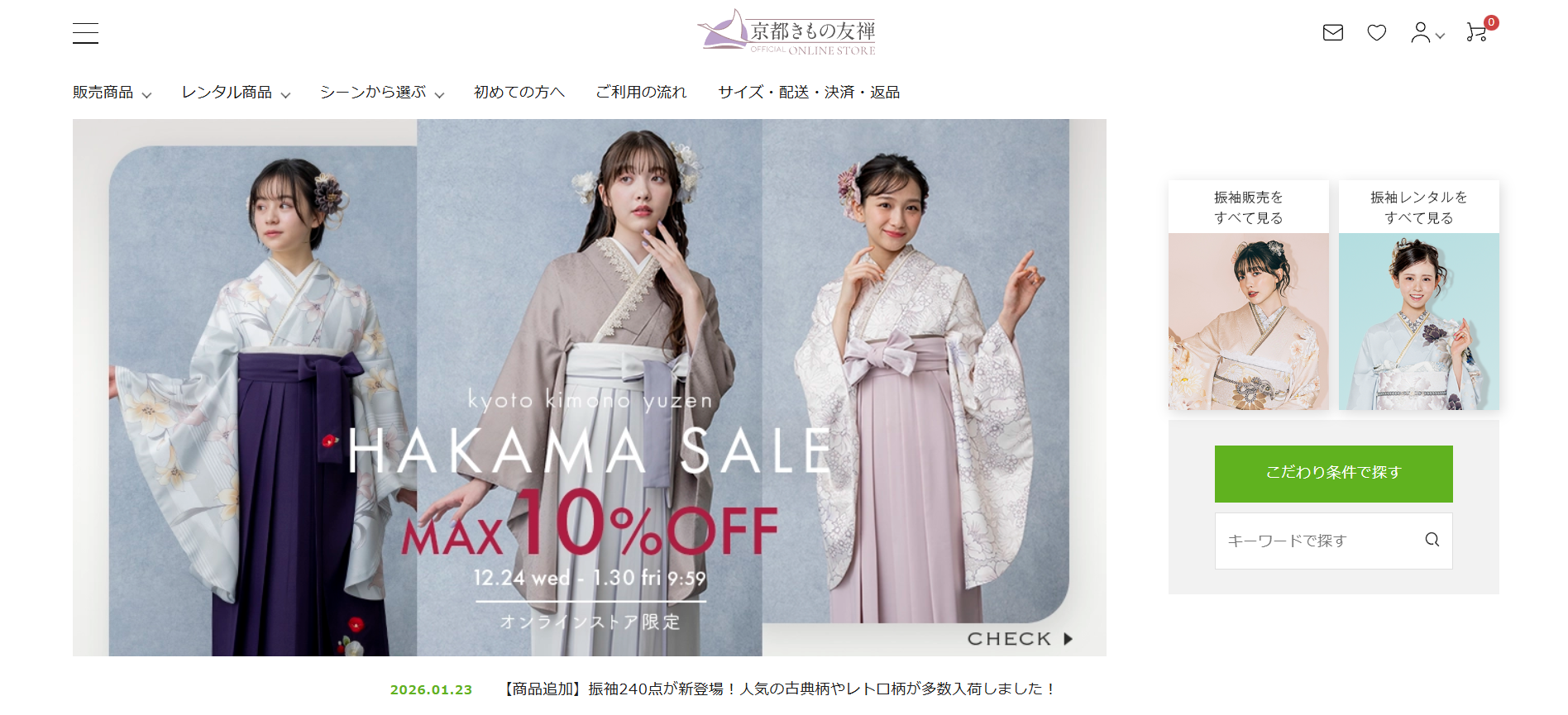 - 成人式の振袖や卒業式の袴、訪問着などのレンタル・販売は、着付けに必要な小物が全て揃ったフルセットが基本です。お客様は「何が必要か分からない」という不安を感じることなく、すぐに着用できる状態で商品を受け取ることができます。さらに、着用後のお手入れやクリーニングは不要で、そのまま返却できるなど、オンラインショッピングならではの手軽さと利便性を追求しています。購入前から着用後まで、お問い合わせへの丁寧な対応や、専属のスタッフによるサポートを通じて、ネットでも信頼感のあるサービス提供に努めています。