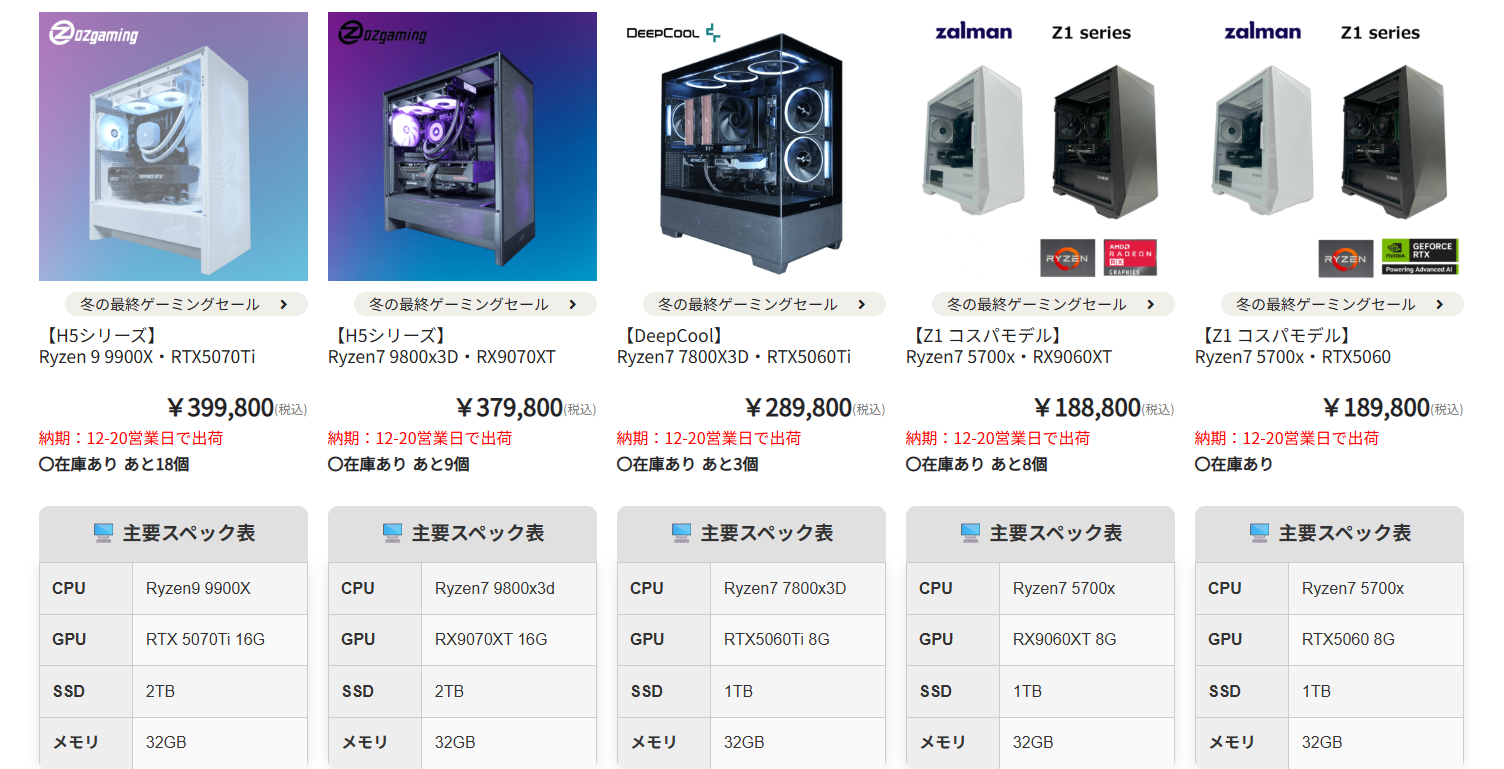 PC本体だけでなく、マウス、キーボード、モニター、さらにはゲーミングチェアに至るまで、「勝つための環境」をトータルで提案できるのがOZgamingの魅力です。各デバイスの相性を考慮したセットアップが可能なため、設定の煩わしさを軽減し、届いたその日から最高のコンディションでゲームを楽しむことができます。