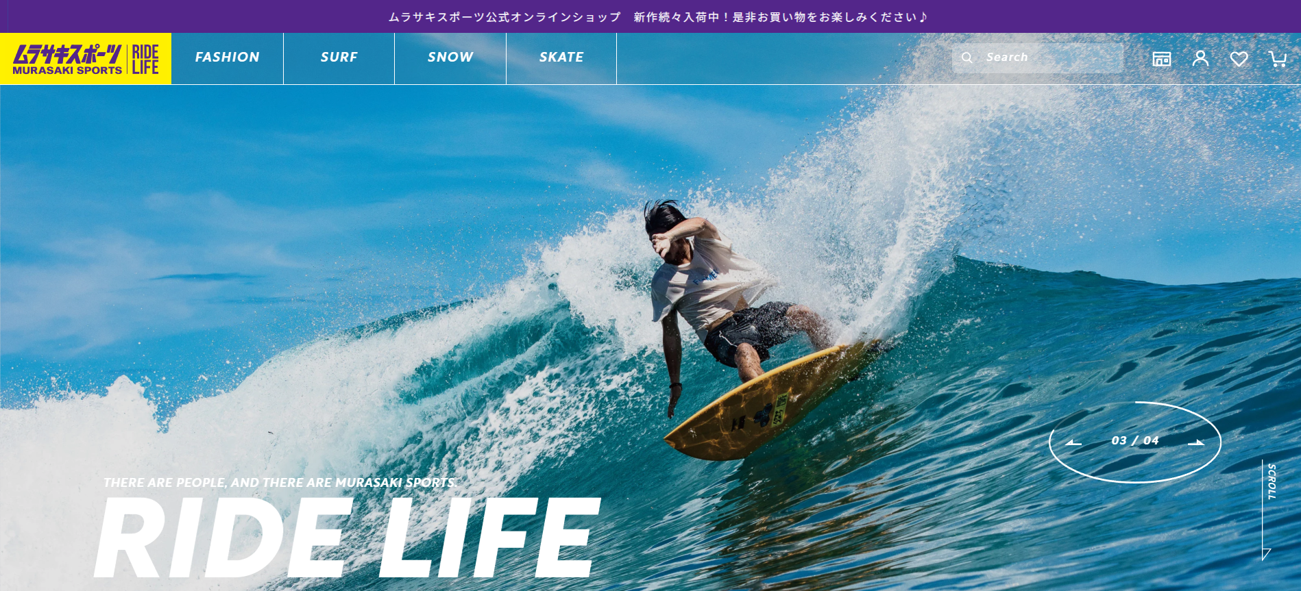 ムラサキスポーツオンラインは、サーフィン、スノーボード、スケートボードといったアクションスポーツ関連の商品を豊富に取り扱っています。ウェア、シューズ、アクセサリーなども充実しており、ストリートファッションとしてのアイテムも多数揃っています。