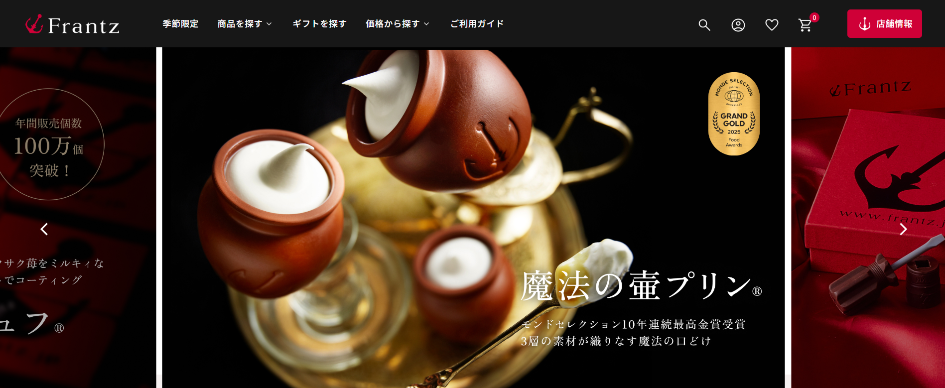 神戸の街並みに溶け込む、赤と黒のスタイリッシュなパッケージ。扉を開ければ、そこには計算し尽くされた「甘い魔法」が待っています。神戸フランツは、伝統的なスイーツに独創的なアイデアを加え、全国のスイーツファンを虜にし続けているブランドです。
