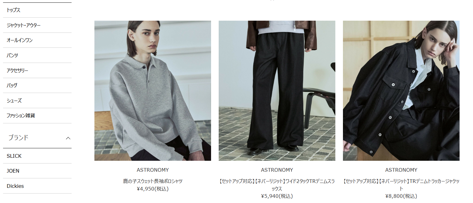 シワになりにくい「TR素材」を使用したセットアップや、ストレッチ性の高いパンツなど、「仕事帰りや休日、リラックスして過ごせること」を前提としたアイテムが豊富です。また、季節に合わせた素材選び(夏は清涼感のあるリネン混、冬は保温性の高いメルトンなど)により、年間を通して快適なファッションを楽しむことができます。